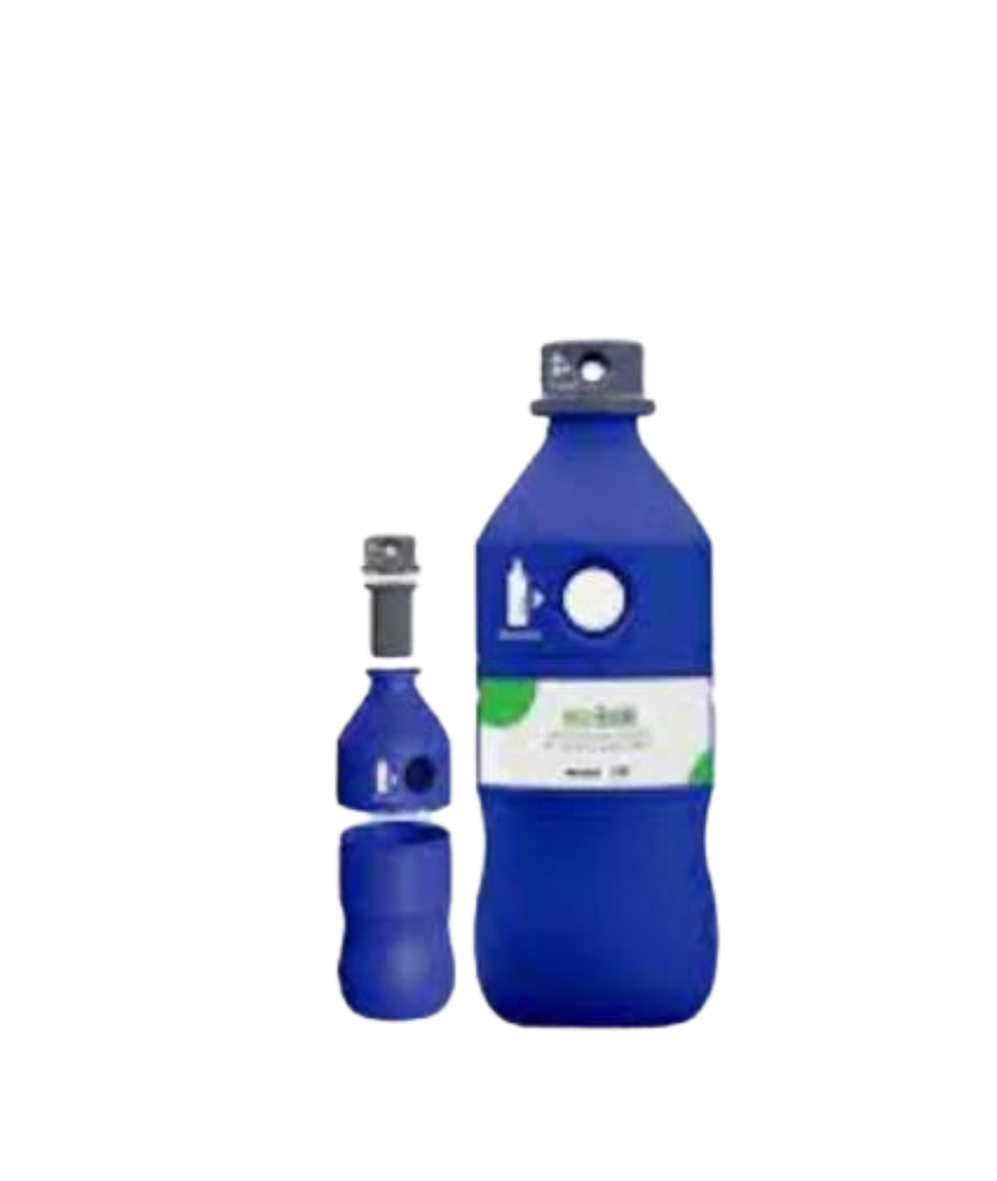 Es un producto que contribuye con la sostenibilidad y ayuda en el ciclo de vida de los envases o botellas. Cuenta con dos contenedores, uno inferior para las botellas y otro superior para las tapas. Cuenta con dos áreas para ubicar adhesivos publicitarios.